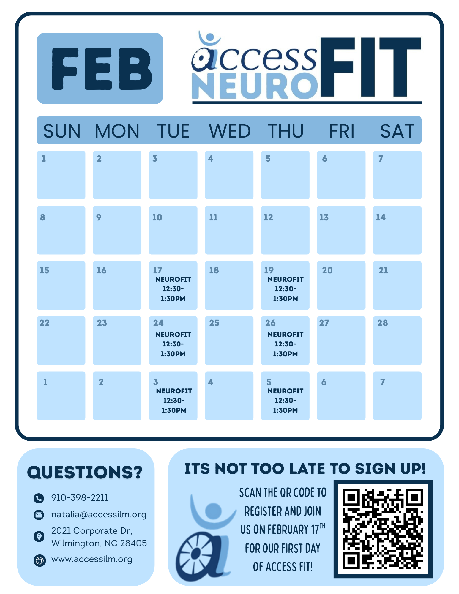 To learn more about ACCESS Fit or to inquire about group sessions, please email Natalia Beaumont at natalia@accessilm.org.